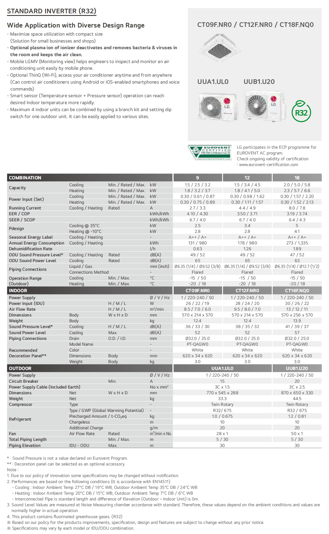 LG Ceiling Cassette CT12F+UUA1 Standard Inverter